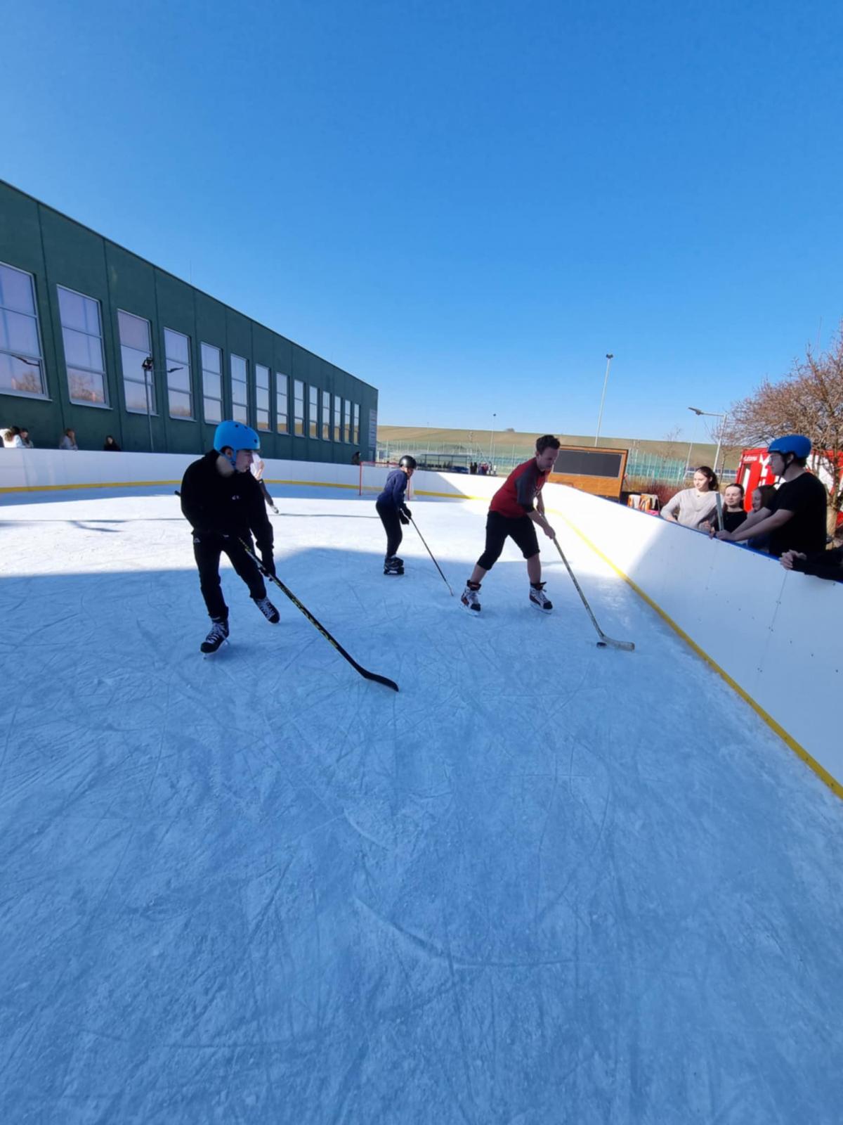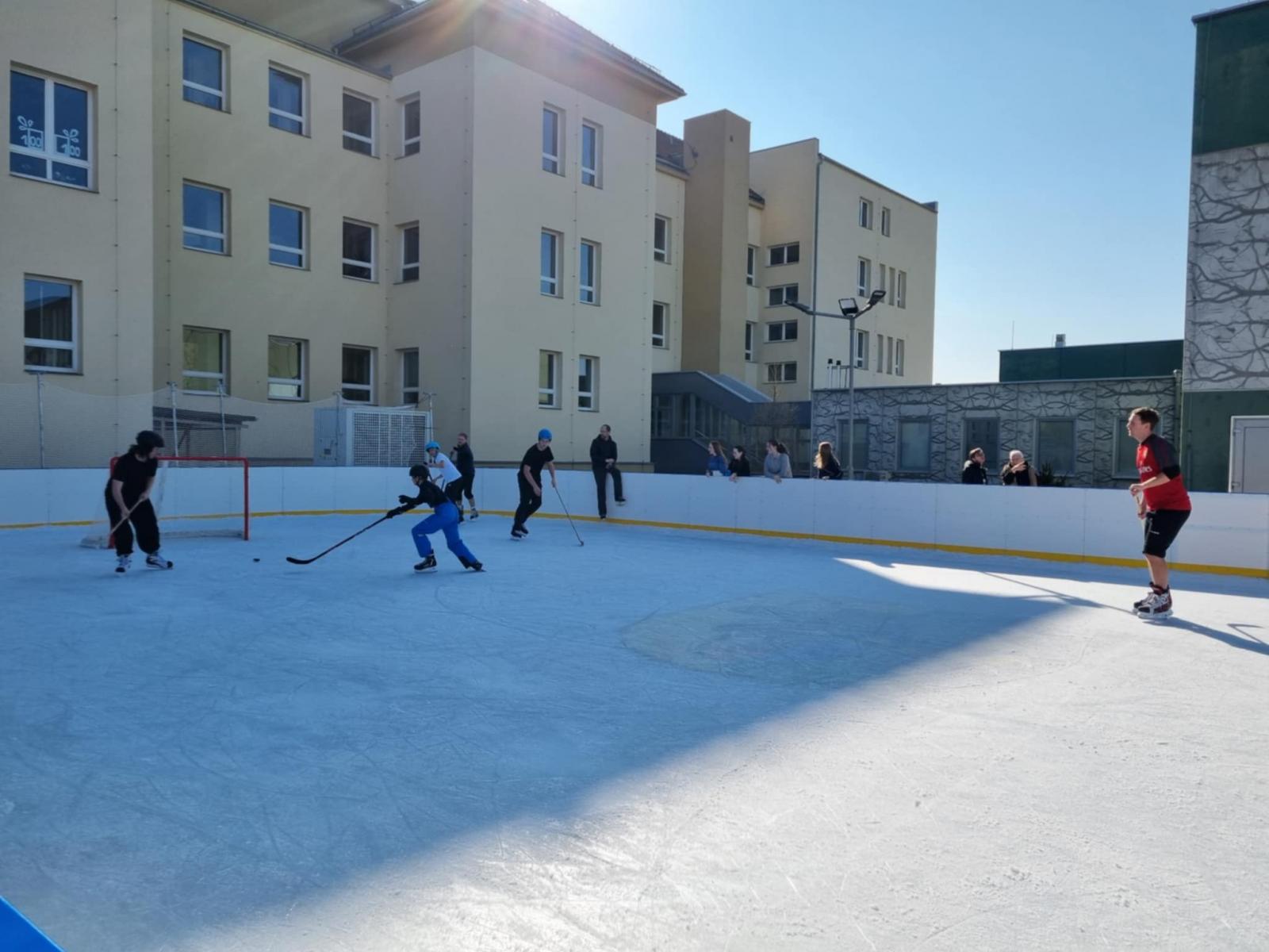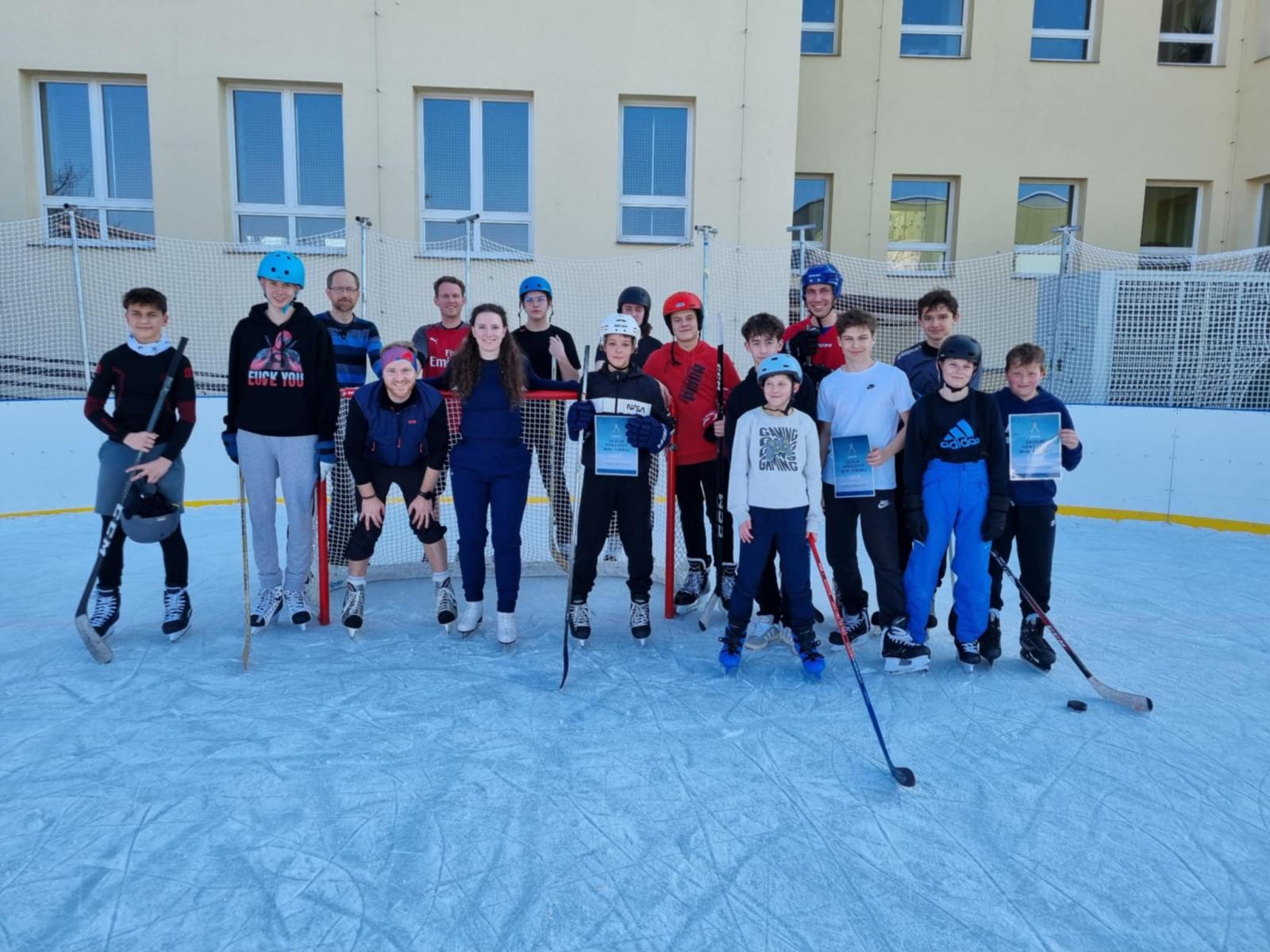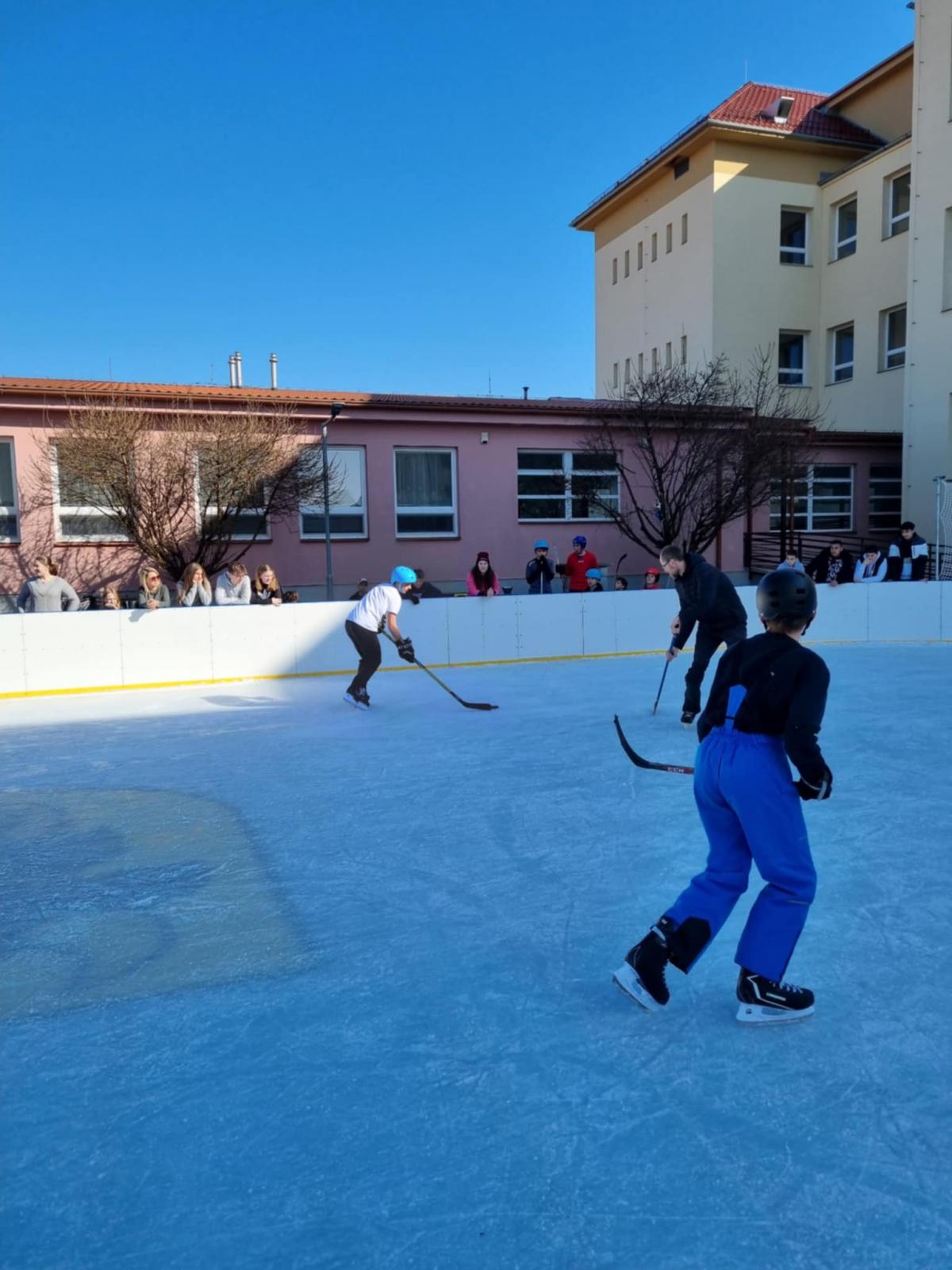 v ledním hokeji. Žáci si vytvořili dvojice nebo trojice a poté k žákům