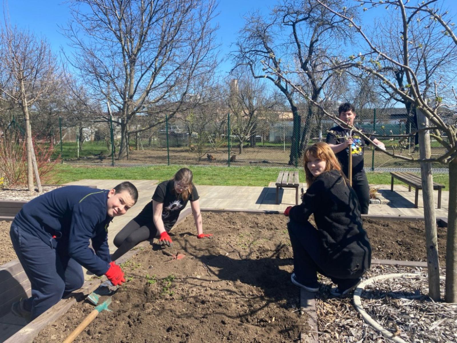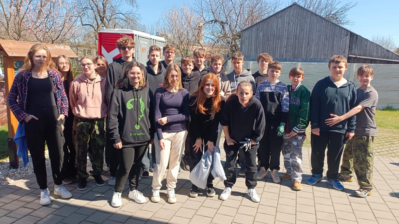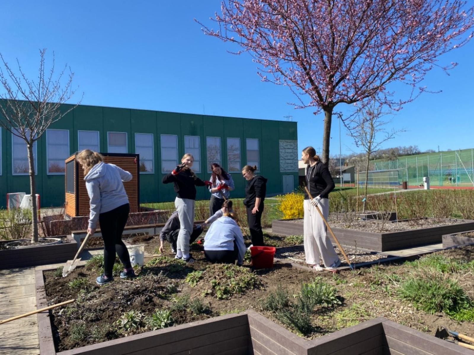 Při letošní akci Ukliďme Česko pomáhala třída 8.B na školní zahradě. Jarní úklid vyžaduje spoustu práce jako příprava záhonů na setí, stříhání živého plotu, pletí květinových záhonů, úprava trávníku…..A co nestihly děti při pracovních činnostech, jsme dokončili my. Chlapci pak vytrhávali keře živého plotu, které přes zimu vyschly a pomohli jsme tak městskému úřadu urychlit výsadbu nových.