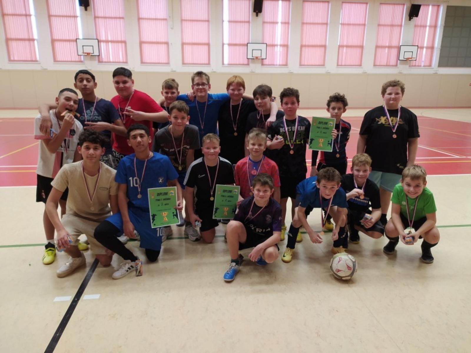 V pátek 20. prosince odpoledne se konal vánoční turnaj ve fotbale ve sportovní hale Suprovka. Zúčastnily se ho tři týmy tvořené žáky naší školy. Turnaj proběhl dvoukolově, znamená to, že týmy hrály proti sobě vždy dvakrát po 15 minutách. Všichni účastníci hráli výborně a bojovali o každý míč. Odměnou jim byly medaile, které dostali všichni hráči. Vítězem turnaje se stal tým složený z žáků 6. ročníku doplněný o Jirku Oulehlu ze 7.B. Druhé místo obsadil tým složený z chlapců ze 7. ročníku a na 3. místě skončilo družstvo tvořené žáky 5. a 4. ročníku. Děkuji všem žákům za účast a věřím, že si turnaj užili.