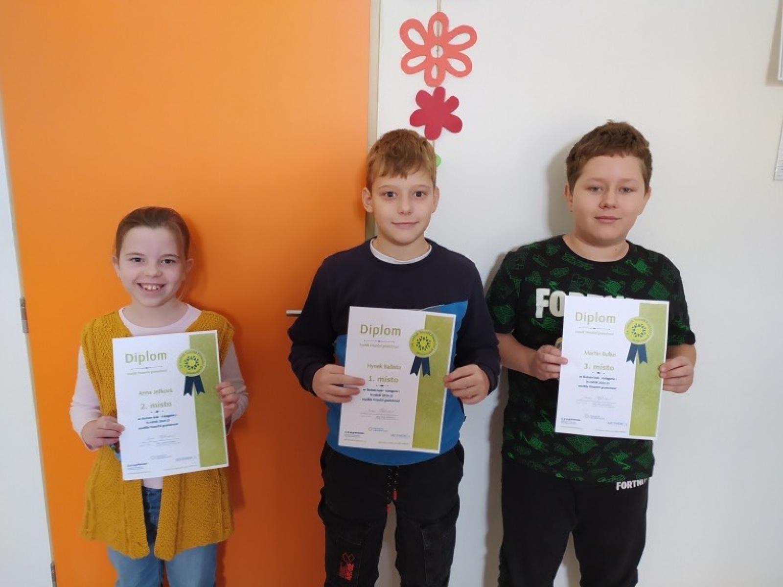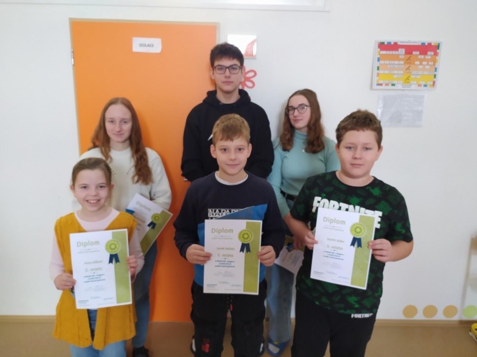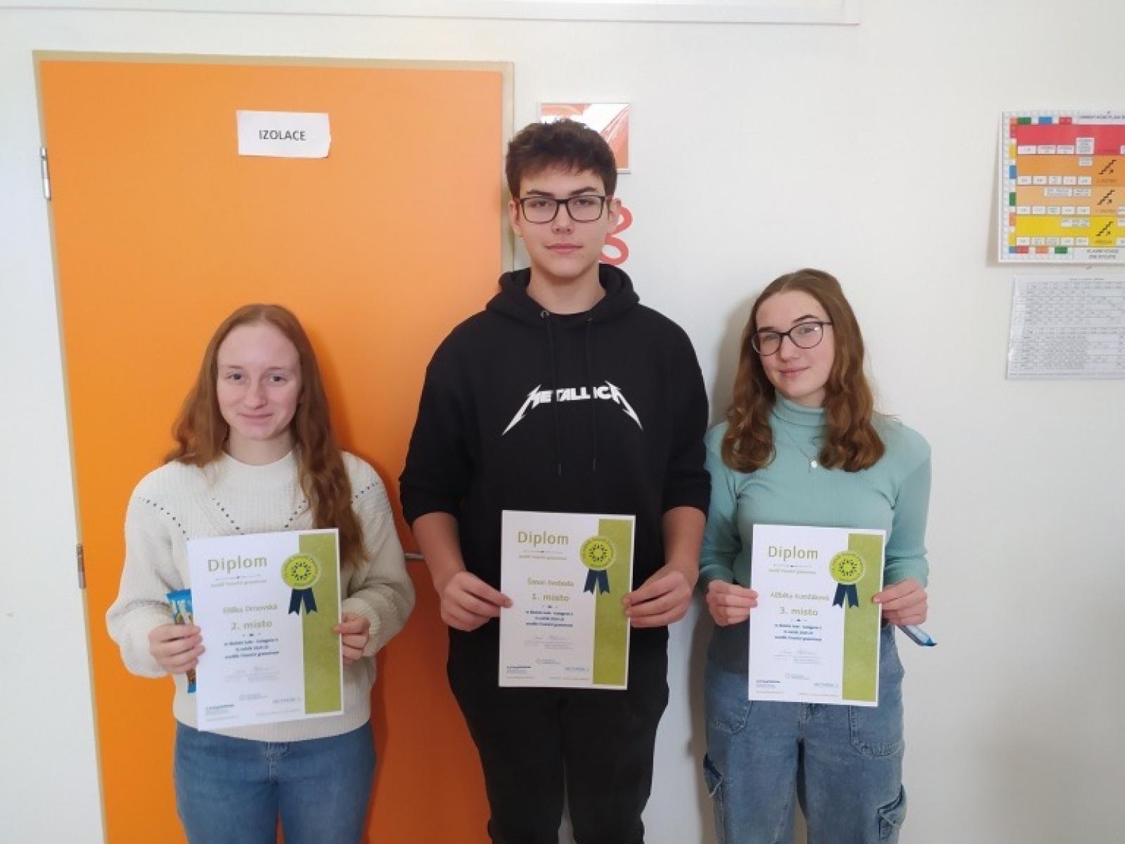 Mezi staršími žáky si nejlépe vedli Šimon Svoboda (9.B), Eliška Drnovská (9.B) a Alžběta Kumžáková (8.B).
