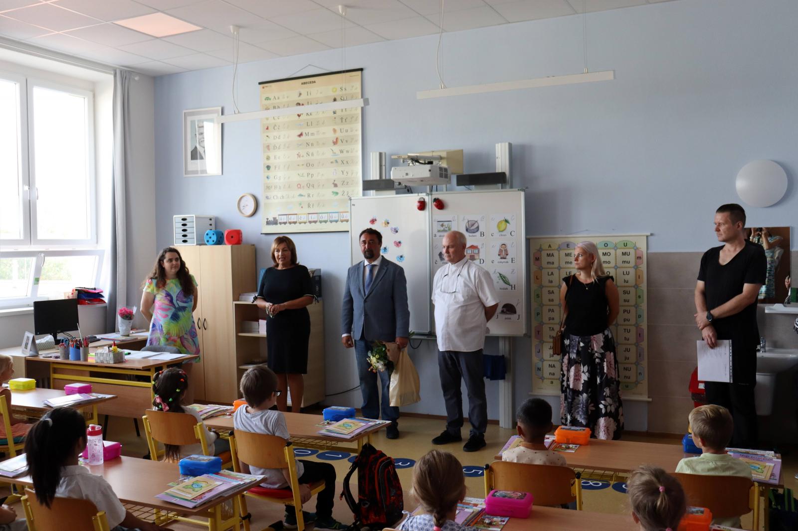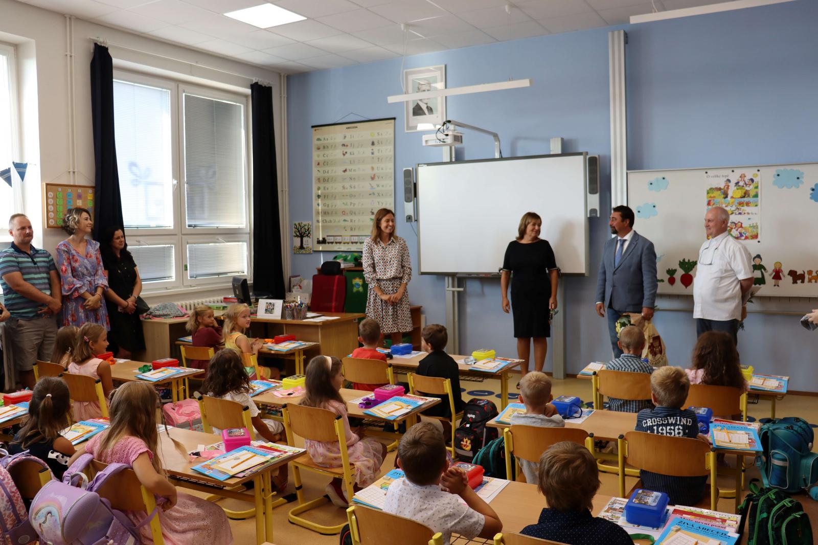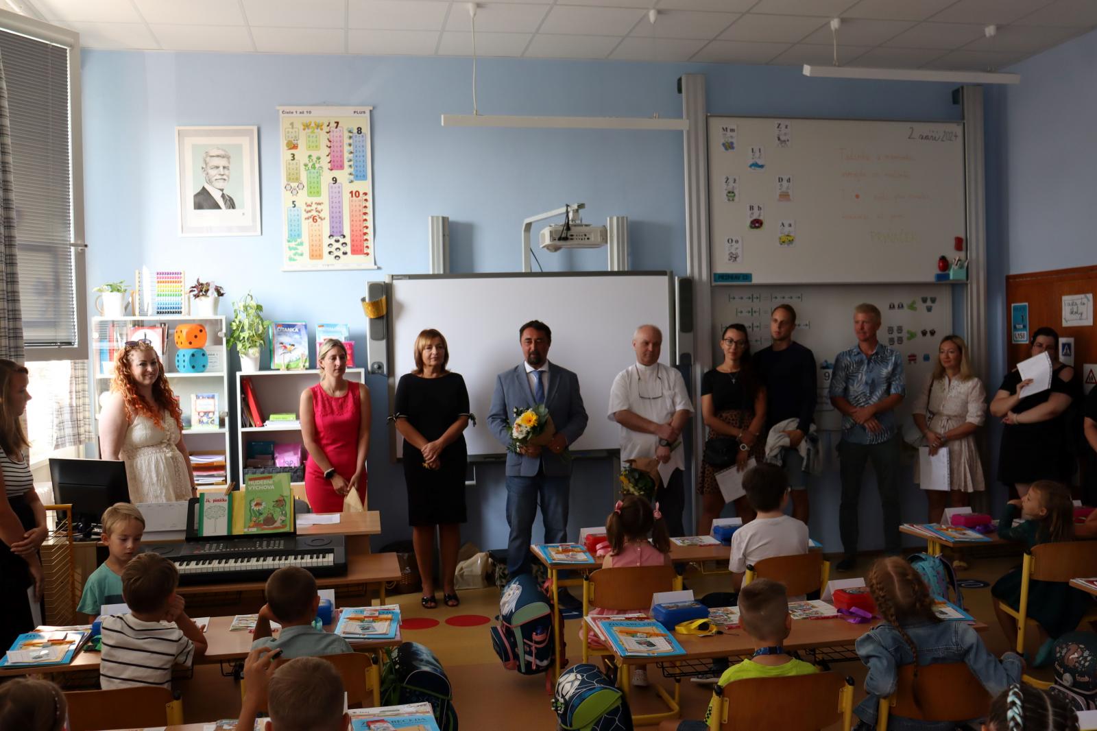Ve třídách, kam se poté naši noví školáci přemístili v doprovodu rodičů, k nim krátce promluvil pan starosta Ing. Martin Ernst a římskokatolický kněz P. Mgr. Ryszard TURKO. Paní učitelky Lucie Vránová, Markéta Tobolíková a Zuzana Répalová, které provedou prvňáčky jejich prvním školním rokem, obdržely od pana starosty kytičku a dárek pro děti-plnicí pera.